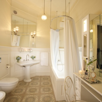 A careful observer will notice the stuccos and rosettes on the top ceiling. We preserved their original form and they now additionally bring that feeling of grandeur to space.